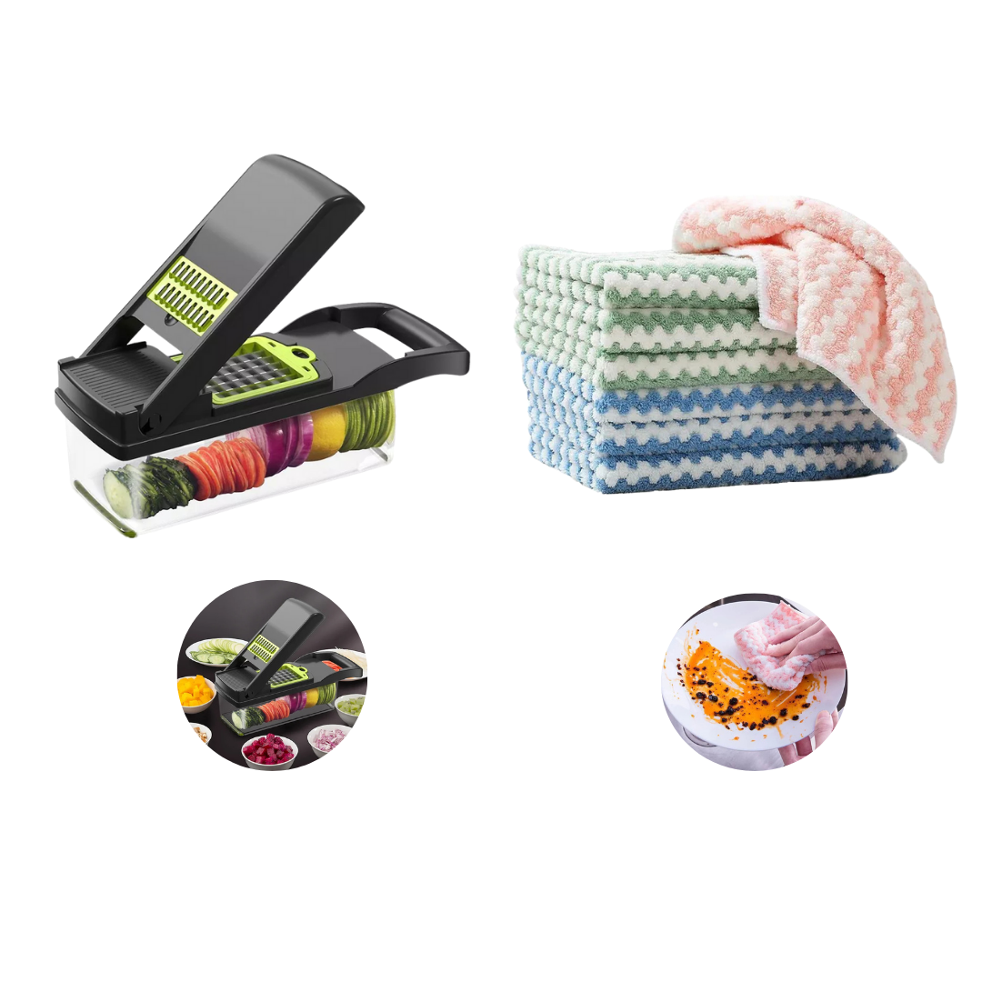 Il Tagliaverdure 16 in 1 è multifunzione e ha il suo contenitomoltore integrato,  più pratico per preparare i migliori piatti senza sporcare o fare confusione, risparmiando molto del tuo tempo.
